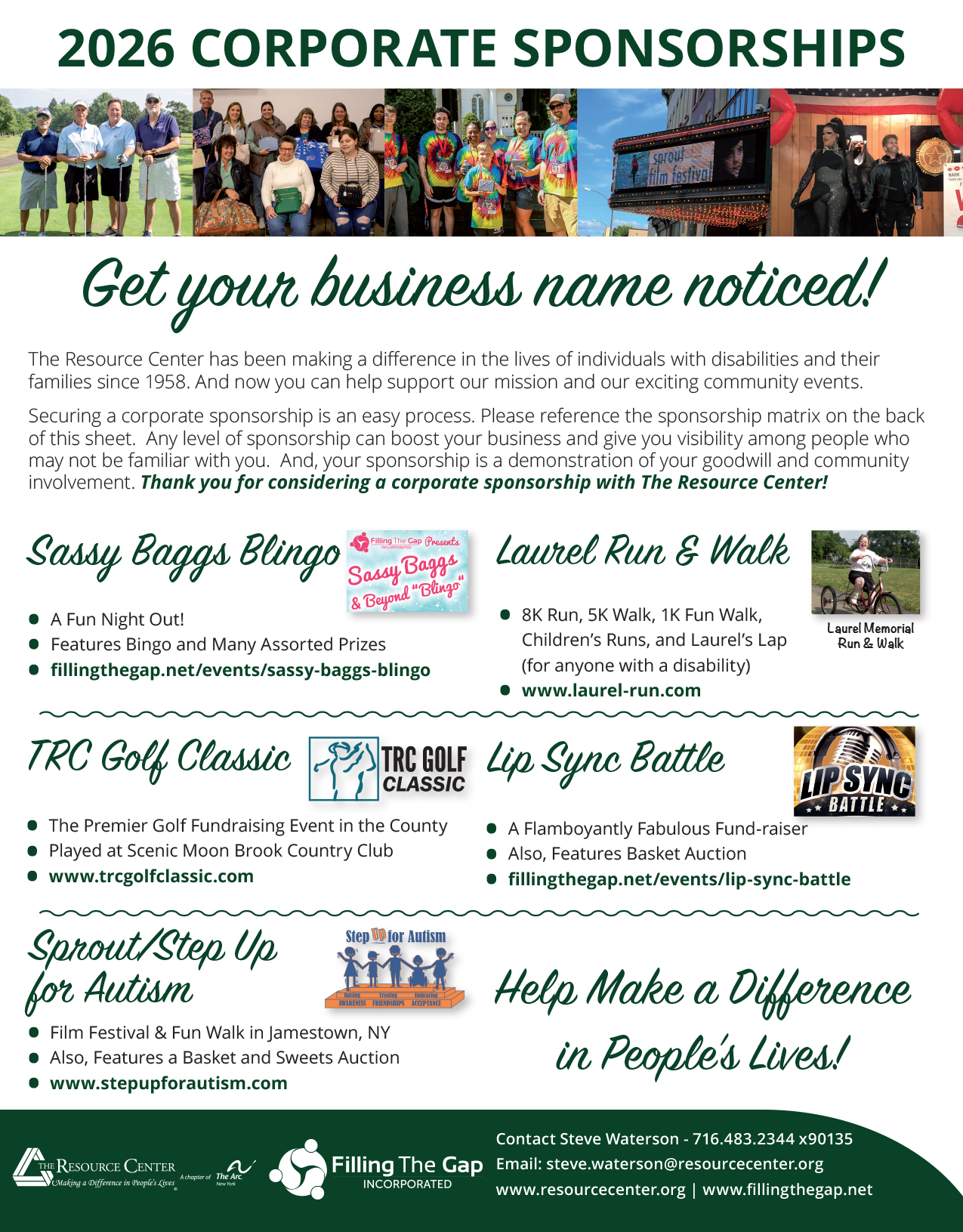 If you or your organization is interested in sponsorship, please use our online form at the bottom of this page or call Steve Waterson, Community Relations Director, at 716. 661.4735. We look forward to partnering with you! If you are a business interested in corporate sponsorship, please click on the corporate sponsorship graphic below to learn more!